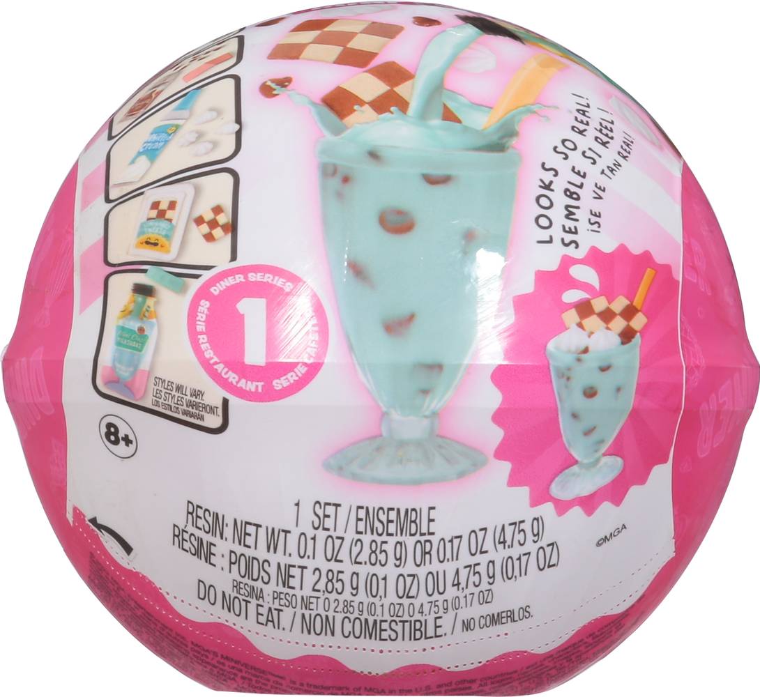 Mga's Mini Verse Make It Mini Food 8+ Dinner Series offers a collection of miniature food items, crafted with attention to detail to resemble real food. The set includes shakes, desserts, and a variety of dinner items, with styles subject to variation. While the colors and specifications of the contents might differ from the images on the packaging, each set comes with instructions for use. All components are manufactured in China. • MGA Entertainment, Inc., • Packaging: Reusable