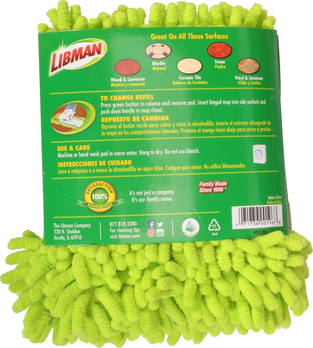Picks up dust and the allergens in it. Great for all your hard surfaces. Family made since 1896. Great on all these surfaces: Wood & Laminate. Marble. Ceramic Tile. Stone. Vinyl & Linoleum. It’s not just a company. It’s our family name. 100% satisfaction guarantee. • The Libman Company, Arcola, IL, 61910, • Packaging: Reusable