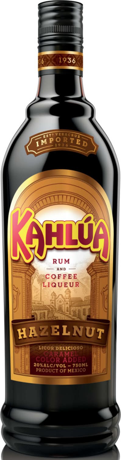 Kahlua Hazelnut is a dark mahogany liqueur that offers a smooth and satiny texture complemented by a creamy, nutty finish. It features a prominent hazelnut flavor that is swiftly accompanied by an intense coffee note. Alcohol by volume: 20%