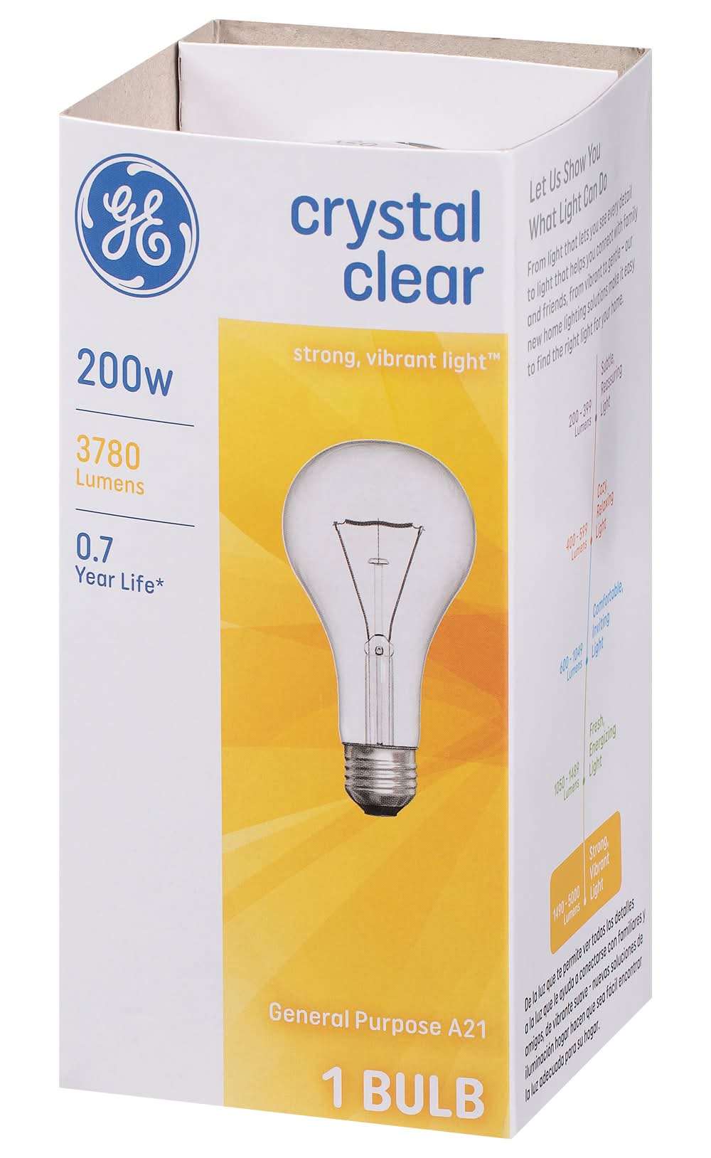 General Electric Crystal Clear General Purpose Light Bulb 200 Watts