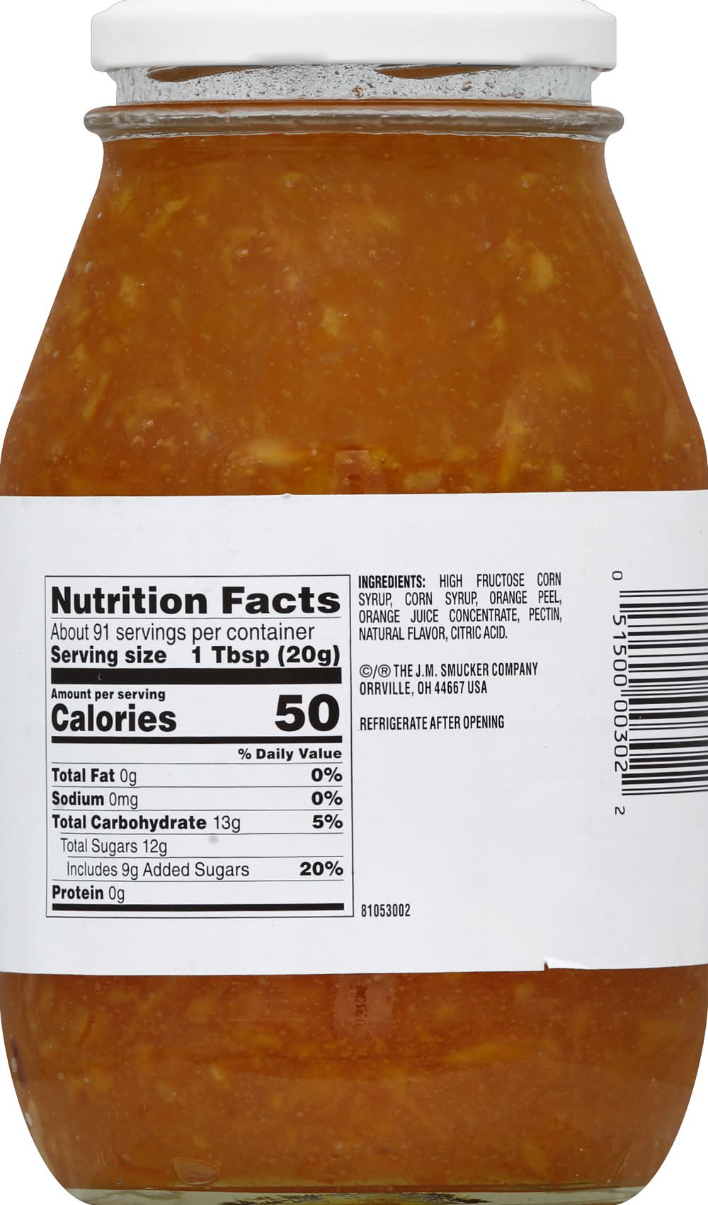 High Fructose Corn Syrup, Corn Syrup, Orange Peel, Orange Juice Concentrate, Pectin, Natural Flavor, Citric Acid