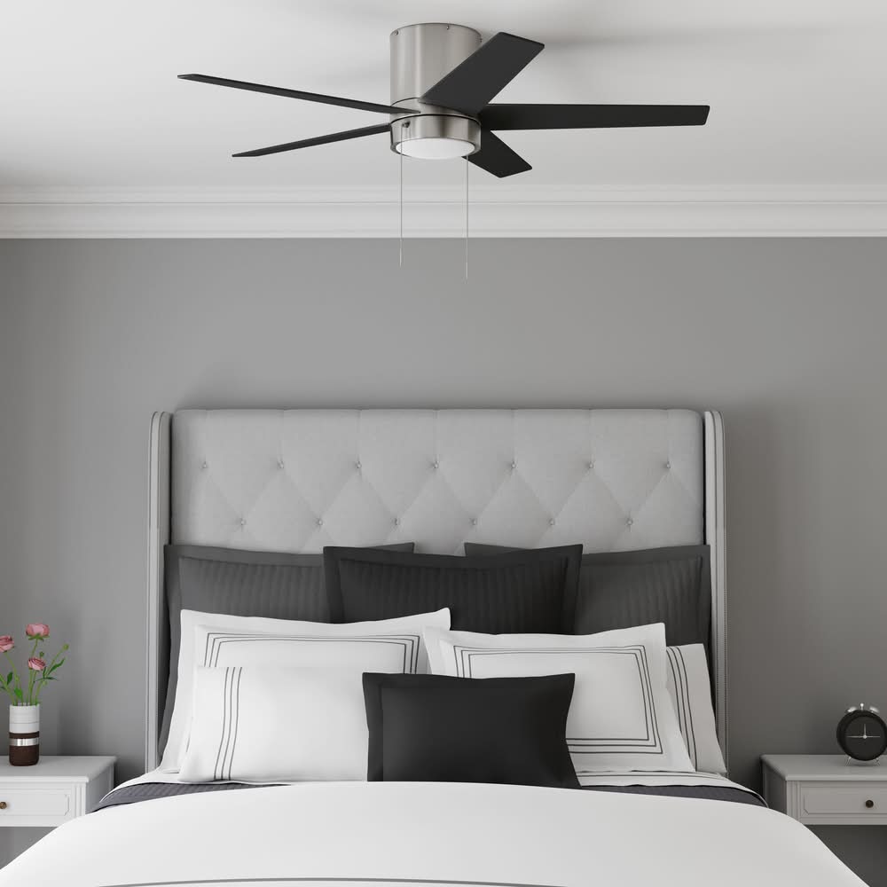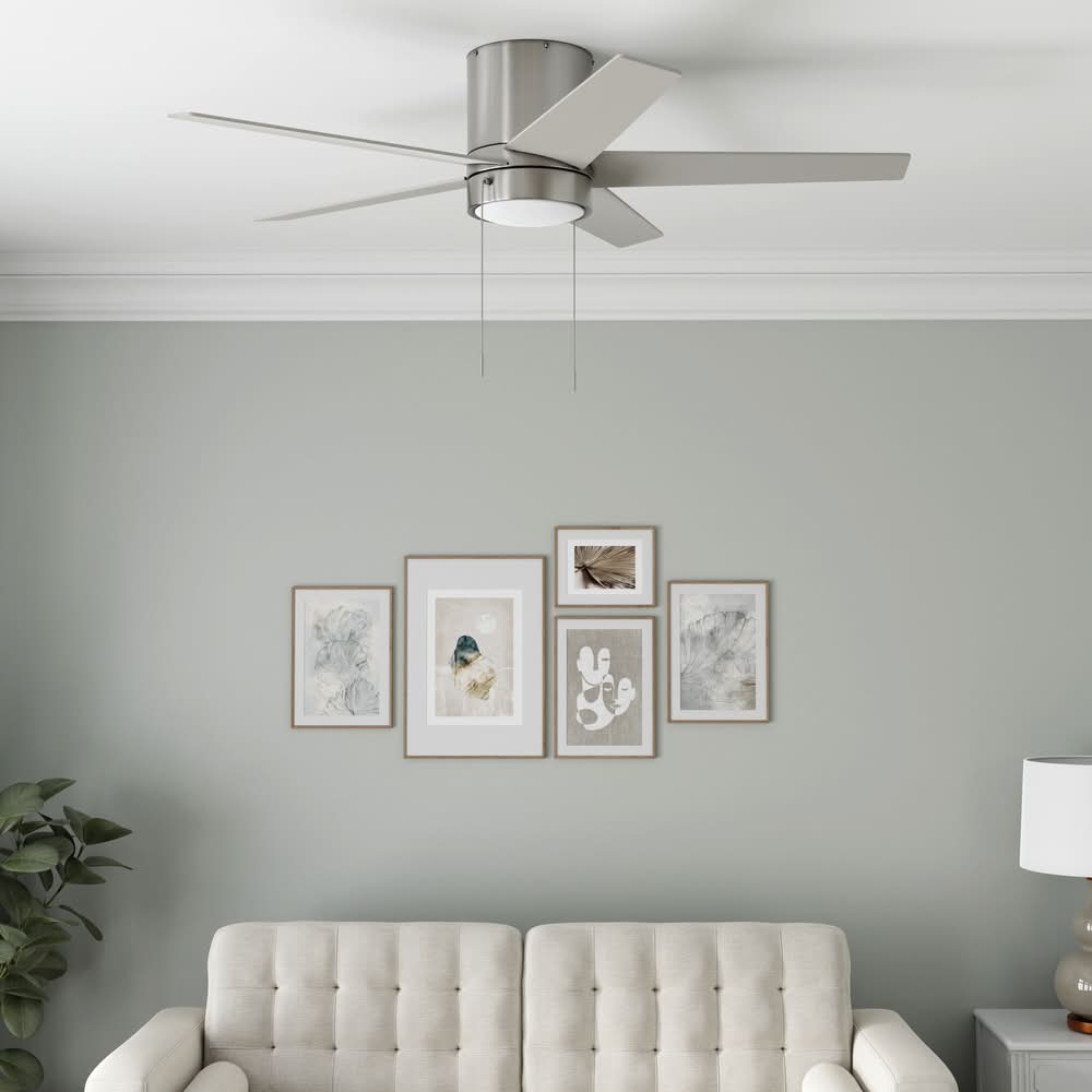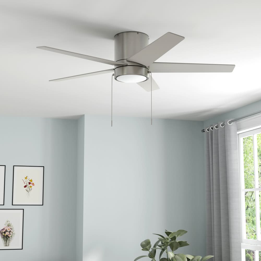 Harbor Breeze Quonta Brushed Led Indoor Flush Mount Ceiling Fan, 52 in, Nickel (22.8 lbs)
