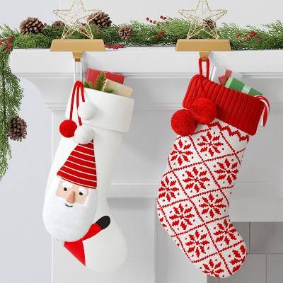 This Knit Fair Isle Snowflakes Christmas Stocking with Pompoms from Wondershop is sure to add classic wintry charm to your festive decor. Perfectly sized for filling with stocking stuffers or other small treats, this holiday stocking features a knit Fair Isle design in red on a white background to complement your seasonal decor. It includes a ribbed cuff in red with red pompoms dangling from it for added flair. Best of all, it's designed with an attached hanging loop, making it easy to hang from the mantel or from any hook to complete the festive look. Welcome to the Wondershop™.