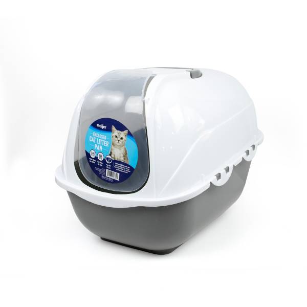 We know how gross cleaning a litter box can be. Thats why we created the Meijer Enclosed Cat Litter Pan, which makes cleaning easier for you and offers more privacy to even the shyest kitties! This 22 litter box will help contain odor and litter better than non-enclosed pans. Stop dreading walking past the litter box and look forward to enjoying time with your furry friend with this pan.