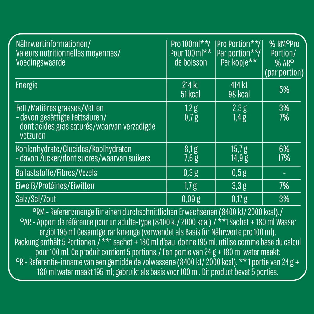 Ingrédients : Sucre, LAIT entier en poudre (38%), sirop de glucose, Café (5.3%), café instantané (5.2%), huile de coco, LACTOSE, arôme naturel, correcteur d'acidité (carbonate de sodium, acide citrique), café torréfié moulu (0.1%), . Contains: Lait entier en poudre, lactose Additives: None