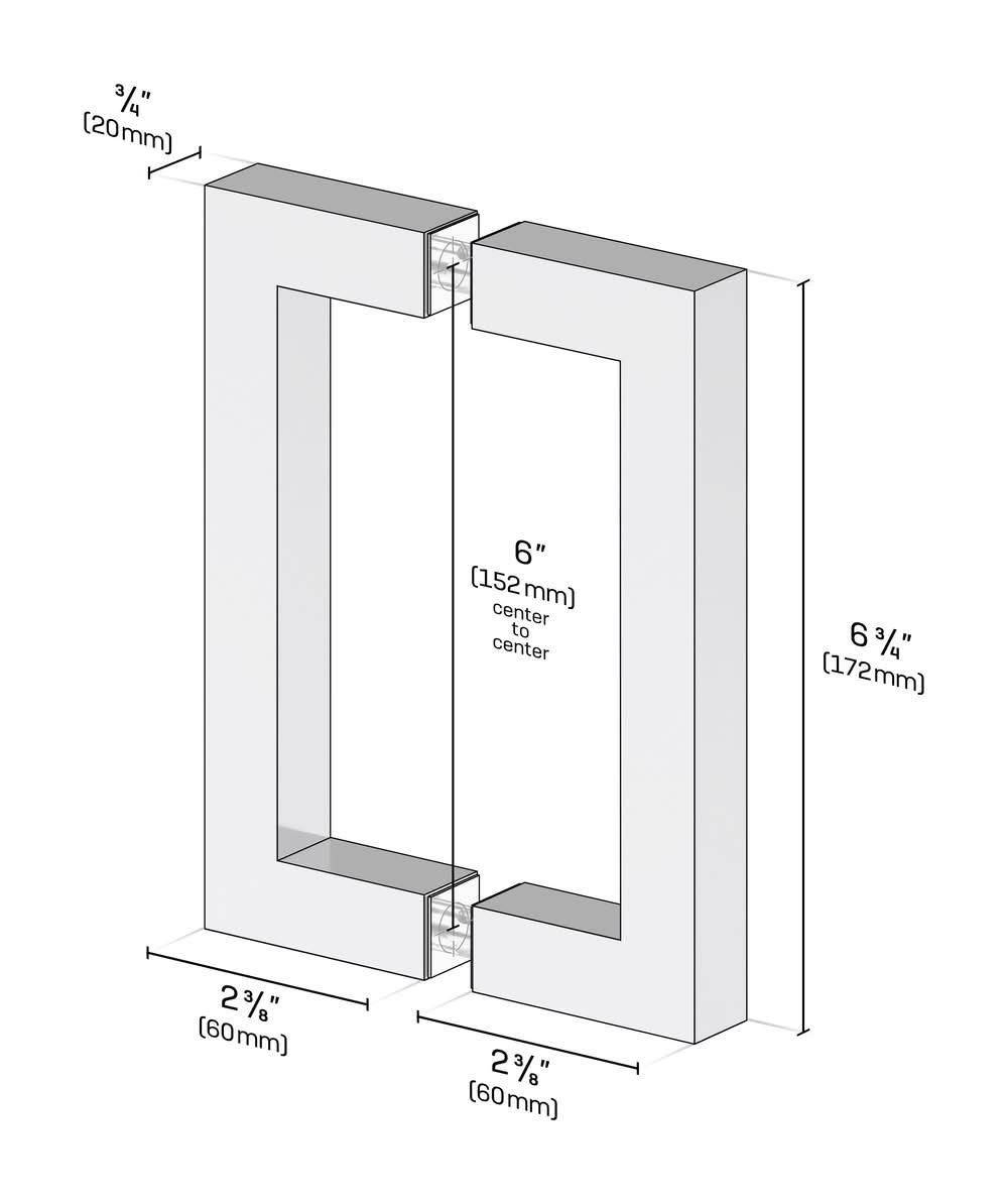 Glass Warehouse Haedus 6" Square Tubing Back To Back Pull Handle (378 g)