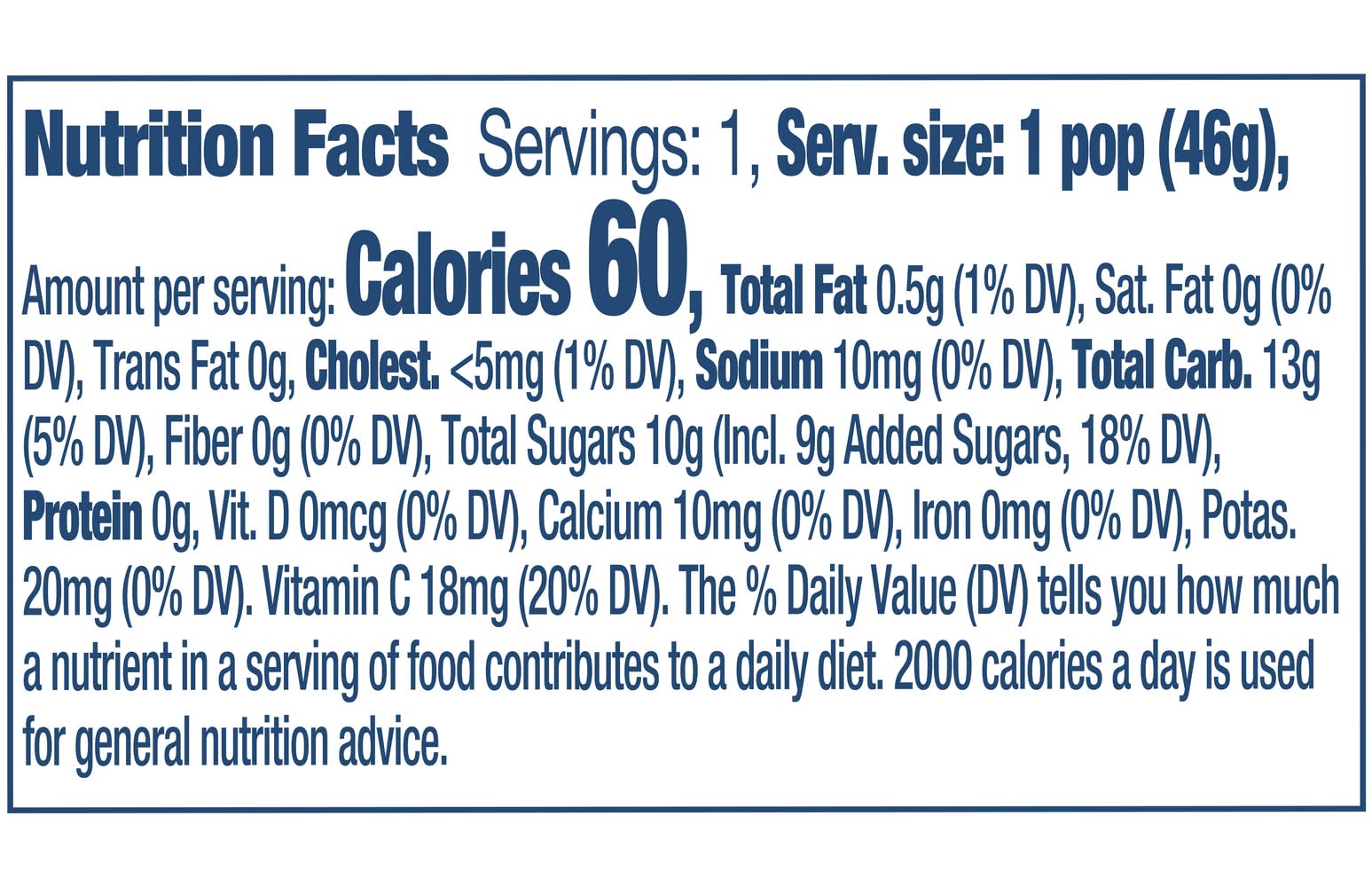 Frollies Fruity Orange Pop Ups bring big fun and big fruity flavor to any occasion. Whether you’re at a kids’ birthday party, family gathering or just enjoying a fun snack, these are the perfect frozen treats to reach for when you want to add some joy to your day! With a creamy texture and fruity flavor, everyone will enjoy these tasty pop-ups. So parents, dig in! -- because why should kids have all the fun? Our frozen pops are made with no artificial colors*, so you can feel good about snack time! *Added colors from natural sources • Flavor: Orange • Size: 1 CT