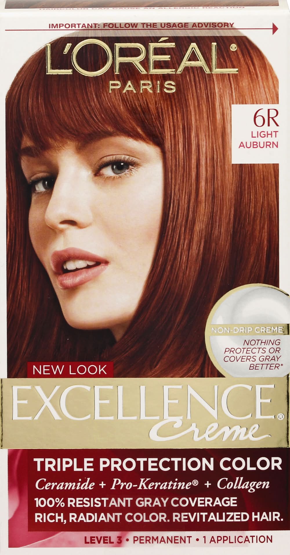 L'Oréal Excellence Triple Protection Color, Light Auburn 6r (9.6 oz)