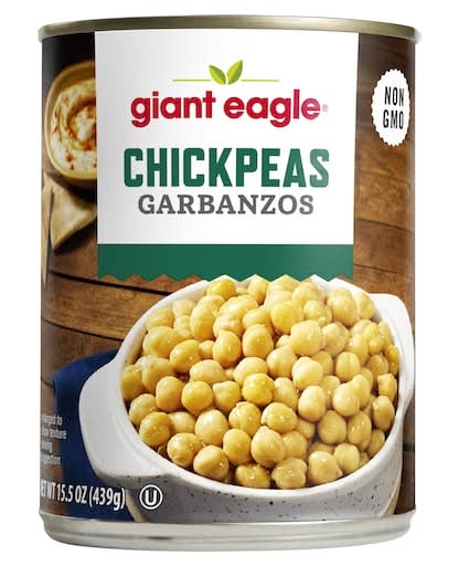 Giant Eagle Chickpeas (Garbanzos), NON-GMO certified, 15.5 oz (439g) can, Perfect for salads, curries, hummus, or roasted snacks, these chickpeas are a rich source of plant-based protein and fiber, making them a smart addition to any diet.