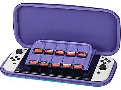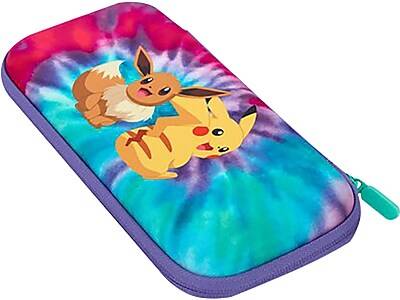 Take your Nintendo Switch or Switch Lite on all your adventures with this PowerA Pokémon slimmed-down case that doesn't compromise on protecting your console. - Slim case to protect your Nintendo Switch/Switch (OLED model)/Switch Lite console - Features a molded interior with felt lining and comes in a Tie-Dye Pikachu & Eevee design - Sturdy handle and durable zipper pull for convenient use - Built-in play stand for Tabletop Mode - Built-in padded screen-protector flap includes game storage for 10 game cards - 2-year manufacturer limited warranty