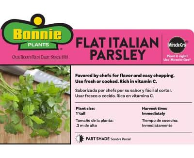 Your Bonnie Plants Italian Flat Leaf Parsley Herb Plant delivery options may vary depending on where you are in a city. Enter your address to browse Bonnie Plants Italian Flat Leaf Parsley Herb Plant delivery options near you.