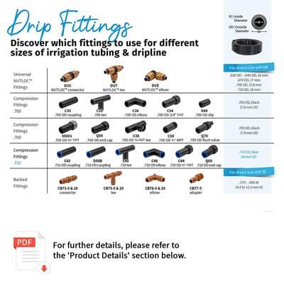 The 1/2 in. MPT x 17 mm barb is used in the installation of 1/2", 5/8" and 17 mm PC drip line and drip tubing. The brown barbed adapter is made of high impact plastic and utilizes a double barb. When the drip line or drip tubing is pushed over the barbed side of the fitting, it creates a tight, leak-free connection.