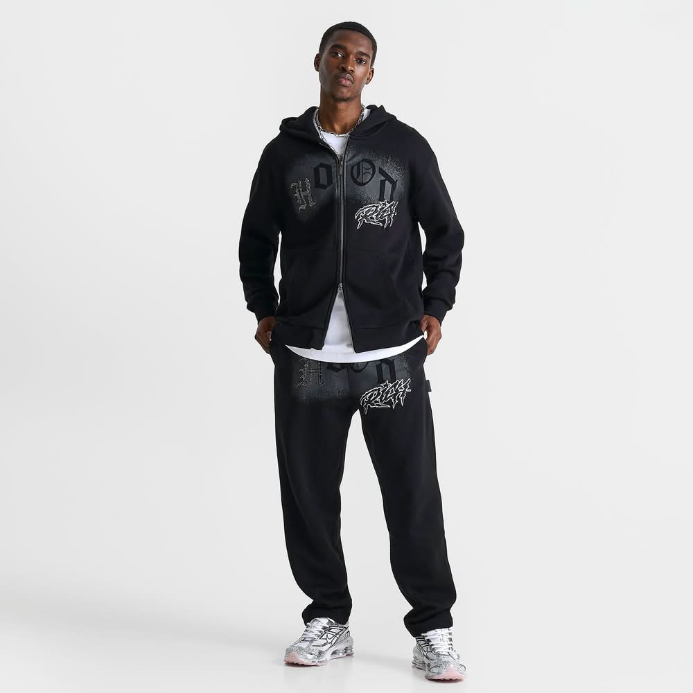 Size & Fit Oversized fit for a baggy, spacious feel Product Features Full-zip design with a two-way zipper and attached hood Brushed fleece feels smooth on the outside, cozy on the inside Screen-printed and embroidered Hoodrich graphics across the front with rhinestone detailing Split kangaroo pocket offers shelter for cold hands and quick storage space Ribbed cuffs and hem streamline the fit 80% cotton, 20% polyester Machine wash The Hoodrich Iron Oversized Full-Zip Hoodie is imported. Built for the bold and to turn heads, the Men's Hoodrich Iron Oversized Full-Zip Hoodie brings raw streetwear style to your layering options. A mix of screen-printed graphics and raised embroidery with glistening rhinestones adds edge and attitude to this full-zip fleece, making it look great from every angle. Pair it with the matching joggers and a fresh set of kicks for head-to-toe comfort and style that stands out without trying too hard.