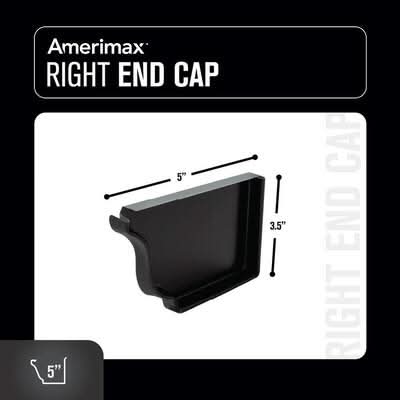 The 5 in. Black Aluminum Right-End Caps are used to close the right side of an aluminum gutter run to help keep water from escaping. These caps feature a durable baked-on black finish. Apply gutter sealant (not included) on the inside of the end cap, attach it to the gutter for leak protection. • Color: Black • Size: 5 in