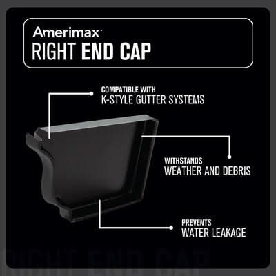 Amerimax Aluminum K Style Right Gutter End Cap, 5 in, Black