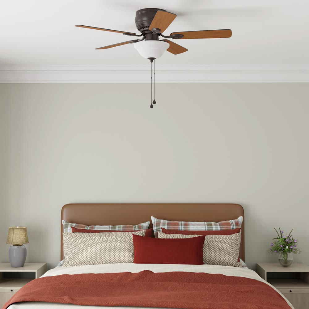 Harbor Breeze Mayfield Flush Mount Bronze Blades Ceiling Fan With Light, Brown-White