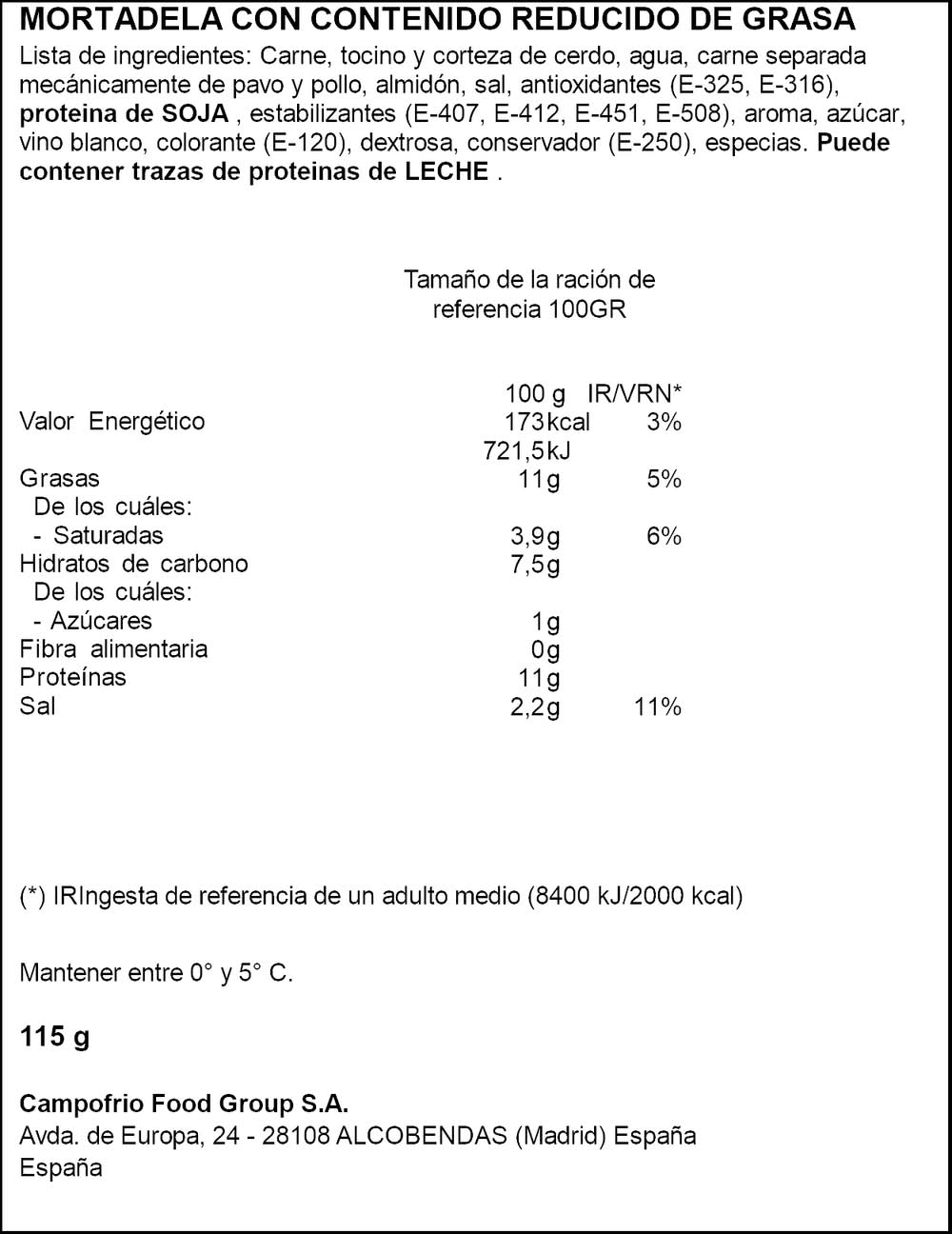 Mortadela clásica sin gluten · Campofrío (115 g)
