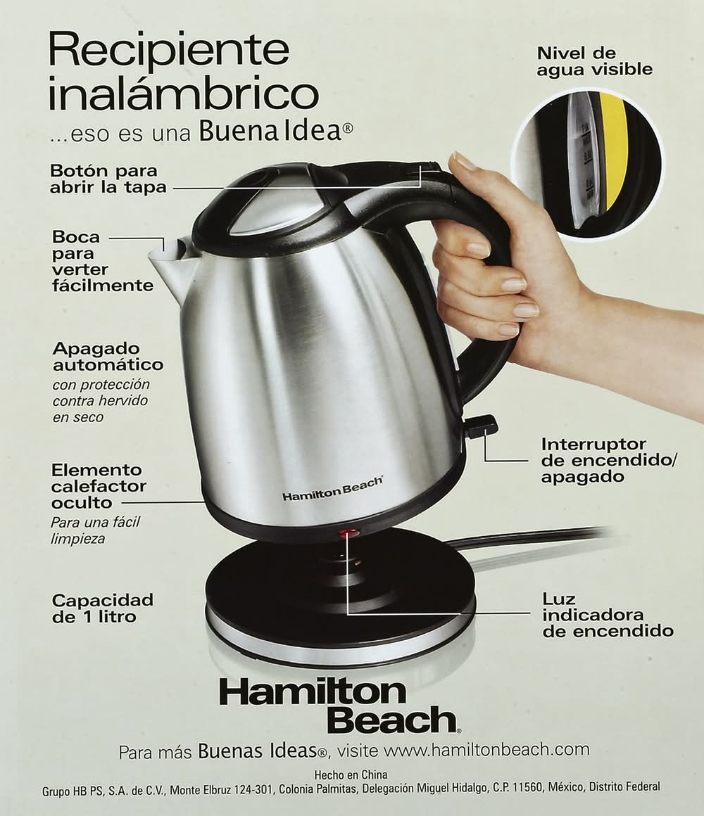 Kettle, Electric, Stainless Steel, 1 Liter HAMILTON BEACH,
