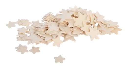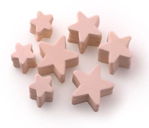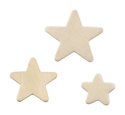 Find the Help your kids express their creativity with wooden stars. These stars can be painted, decorated or added to a multitude of art projects. Have a palette of fun and help your child reach for the sky! Unfinished .For ages 3 and up . 30 large stars (1.6" x 0.05"/4.3cm x 0.15cm) 40 medium stars (1.3" x 0.05"/3.4cm x 0.15cm) . 40 medium stars (1.3" x 0.05"/3.4cm x 0.15cm) 60 small stars (0.9" x 0.05"/2.4cm x 0.015cm)