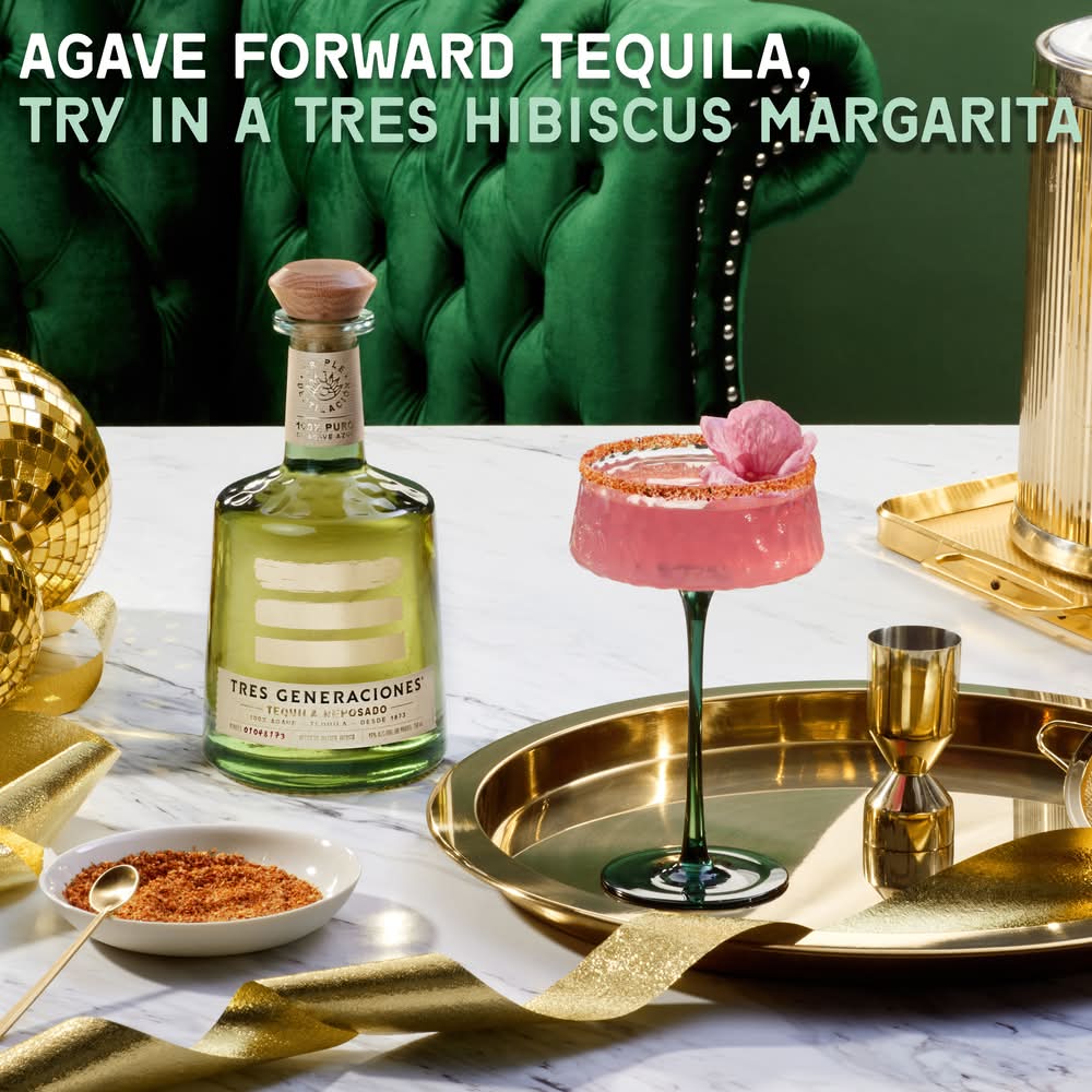 Tres Generaciones Reposado Tequila is a triple-distilled tequila made from 100% hand-selected blue agave. Tres Generaciones Reposado rests in American oak barrels for at least four months to deliver an initial spiciness of toasted oak with a background of herbs and fresh agave. This sweet and spicy tequila delivers a warm, dry finish with lingering white pepper. Whether enjoyed neat, on the rocks, or in classic cocktails, Tres Generaciones Reposado delivers sweet, spicy flavor in every sip. Combine with triple sec and lime juice for an elevated margarita, or enjoy simply with soda water and lime to experience the layered flavor this tequila offers. • Alcohol by volume: 40% • Jim Beam, Merchandise Mart Plaza Suite 1600, Chicago, IL.
