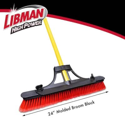Libman High Power Contractor Grade Multi-Surface Push Broom With Brace & Fiberglass Handle, 24 in