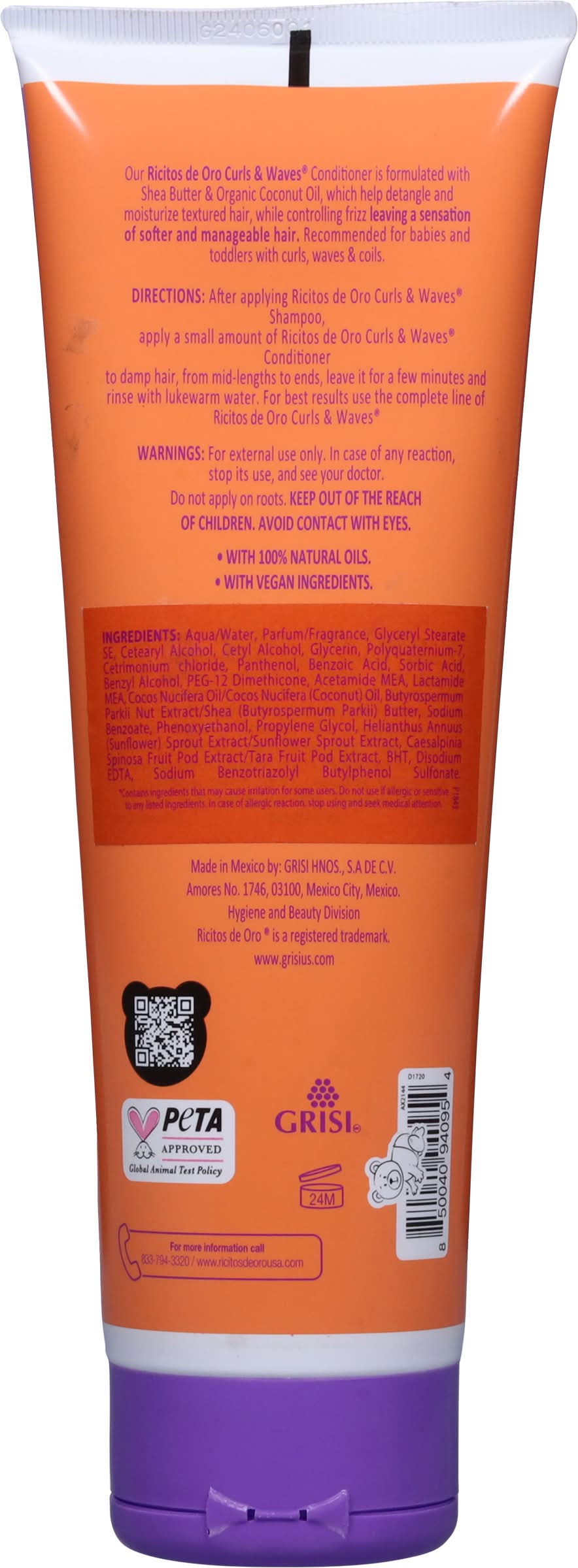 Directions: After applying Ricitos de Oro curls & waves shampoo, apply a small amount of Ricitos de Oro curls & waves conditioner to damp hair, from mid-lengths to ends, leave it for a few minutes and rinse with lukewarm water. For best results use the complete line of ricitos de oro curls & waves.