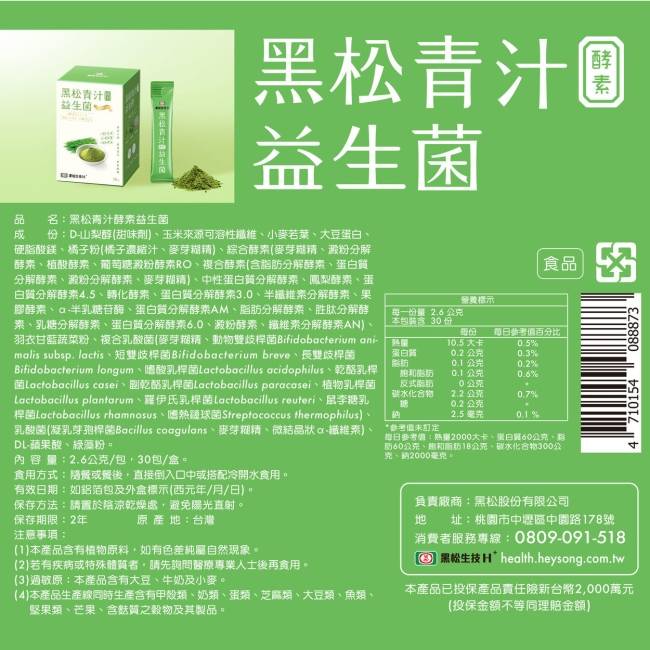 Heysong黑松生技 黑松青汁酵素益生菌 (30 入)