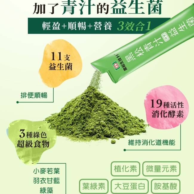 3大綠成分:順暢, 輕盈, 營養GET 幫助消化, 排便順暢, 清爽甘甜.3種綠色超級食物, 11種益生菌, 19種消化酵素. 黑松股份有限公司, 桃園市中壢區中園路178號