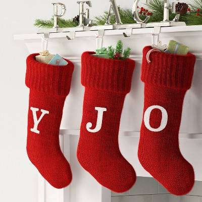 Made from a festive knit fabric that lends a homey look to your decor, this classic red Christmas stocking is perfect for filling with sweet treats and other stocking stuffers. Plus, it features a white monogram accent on the front so Santa can easily discern whose stocking is whose. Simply use the included top loop to hang it by your fireplace and let Santa do his thing.