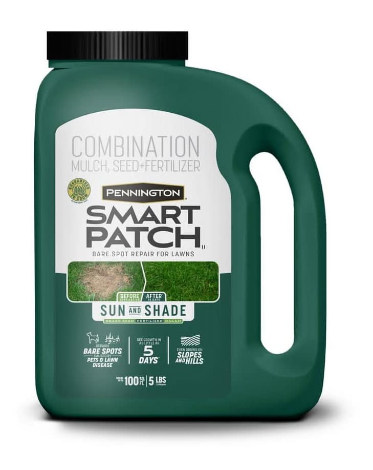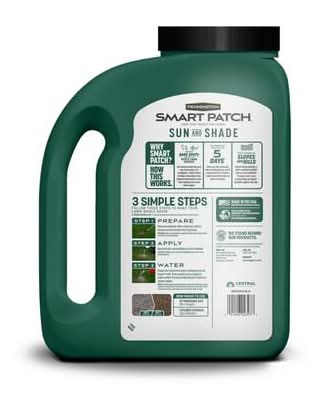 With Pennington Smart Patch, you don't need to know why your lawn has thin, bare or brown spots. Smart Patch eliminates the guesswork and frustration of lawn repairs. This product has everything you need to fix bare spots, neutralize soil and disease problems and grow thick, lush, water-conserving grass - even on slopes and hills. Pet damage and dog urine spots? Repair with no problem. Lawn disease and poor soil conditions? That's covered, too. With Smart Patch, you'll see quick results you can rely on. It's the smart choice for lawn repairs. Smart Patch Sun and Shade Mix is everything your lawn needs and more. This dynamic seeding mixture contains microbials with organic matter to fight and prevent lawn disease, patented American Ryegrass that is guaranteed to produce quick results and a water-soluble tackifier that acts as a blanket for your seed, even protecting it against the rain on slopes and hills. Our Smart Patch seeding mixture is drought tolerant and contains just the right amount of fertilizer to help your lawn succeed, along with mulch that turns a lighter color when dry - notifying you that its time to water again. Plant this grass seed mix in the early spring or early fall and begin to see growth in as little as 5-days and full results as soon as 14-days. for optimum coverage, use 1 lb. per 4 sq. ft. for extended coverage use 1 lb. per 20 sq. ft. Packaging: Reusable