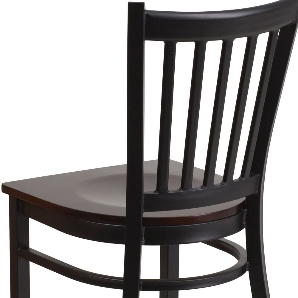 Flash Furniture Vertical Back Metal Restaurant Chair With Walnut Wood Seat, Black