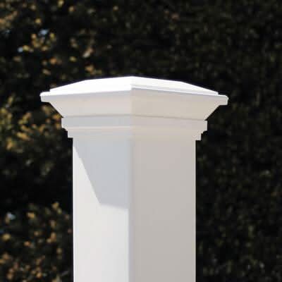 The Veranda 4 in. x 4 in. Contemporary Post Cap is designed to match all white 4 in. x 4 in. and 3-1/2 in. x 3-1/2 in. posts. It is durable and has a contemporary design that is compatible with existing home decors yet enables you to create a unique space of your own. Backed by a transferable limited lifetime warranty. • Color: White • Size: 4x4 in