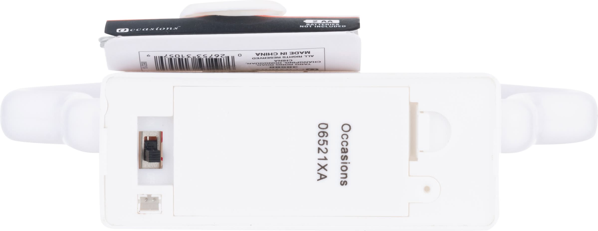 Battery Usage: (1) Do not mix old and new batteries. (2) Do not mix alkaline, standard (carbon-zinc), or rechargeable batteries. (3) Exhausted batteries are to be removed from the product. (4) Dispose of exhausted batteries with care. Operating Instructions: (1) Remove the product from the package. (2) Remove try me cable by unplugging the wire from the bottom. (3) Slide switch to the ON position. Battery Replacement: (1) Remove the battery compartment cover. (2) Install 2 x AA (1.51 V) batteries to the battery compartment with correct polarity as indicated (see diagram). (3) Replace cover. - Directions: Battery Usage: (1) Do not mix old and new batteries. (2) Do not mix alkaline, standard (carbon-zinc), or rechargeable batteries. (3) Exhausted batteries are to be removed from the product. (4) Dispose of exhausted batteries with care. Operating Instructions: (1) Remove the product from the package. (2) Remove try me cable by unplugging the wire from the bottom. (3) Slide switch to the ON position. Battery Replacement: (1) Remove the battery compartment cover. (2) Install 2 x AA (1.51 V) batteries to the battery compartment with correct polarity as indicated (see diagram). (3) Replace cover.
