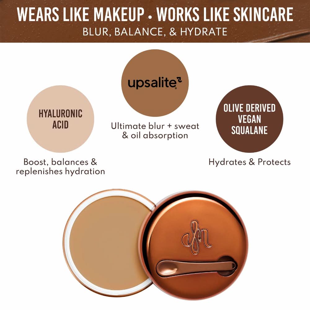 Visibly balancing balm-to-powder primer/foundation for a smooth, refined finish and all-day absorption of sweat and oil. Coverage: Light. Finish: Matte. Free of parabens, formaldehydes, formaldehyde-releasing agents, phthalates, mineral oil, retinyl palmitate, oxybenzone, coal tar, hydroquinone, sulfates SLS & SLES, triclocarban, triclosan, and contains less than one percent synthetic fragrance. It is also gluten-free and cruelty-free. This weightless, silicone-powered formula forms a blurring, visibly texture-reducing barrier that enhances the application of any complexion product. Wear alone for blurred, natural-matte coverage or under your favorite foundation for an unbelievably smooth finish that gets better as the day goes on.