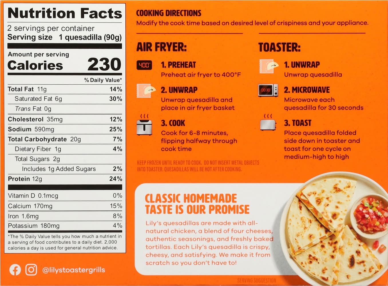 Lily's Toaster Grills Toaster Quesadilla, Chicken & Four Cheese (6.3 oz, 2 ct)