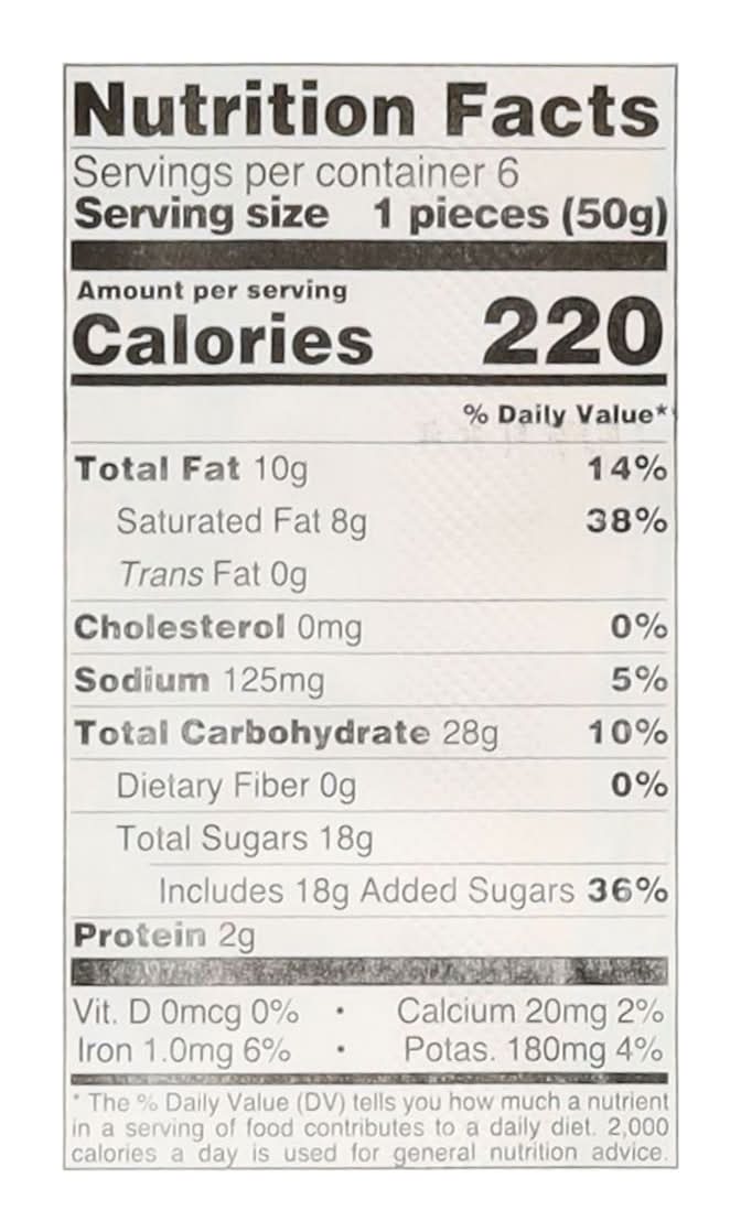Sugar, Wheat Flour, Glucose Syrup, Eggs, Hydrogenated Vegetable Oil (Palm, Palm Kernel Oils), Vegetable Palm Oil, Vegetable Oil Shortening (Palm, Cotton, Sunflower, Canola Oils), Egg Whites, Glycerol, Cocoa Powder, Dextrose, Coconut, Caramel (Color), Coffee, Corn Starch, Nonfat Dry Milk, Leavening (Sodium Acid Pyrophosphate, Sodium Bicarbonate), Salt, Artificial Flavor (Coffee), Potassium Sorbate (Preservative), Mono- and Diglycerides, Soy Lecithin, Polyglycerol Esters of Vegetable Fatty Acids, Artificial Flavor (Milk), Sodium Stearoyl Lactylate, Xanthan Gum, Citric Acid, Tocopherol (Antioxidant), Potassium Stearate, Vanillin Contains: Eggs, Milk, Soybeans, Wheat, Tree Nuts, Coconuts, Corn, Tree Nuts, Almonds, Tree Nuts, Hazelnuts/Filberts, Tree Nuts, Pistachios, Tree Nuts, Coconuts, Peanuts, Tree Nuts