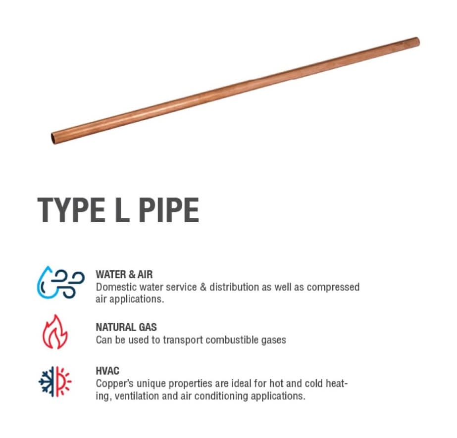 Ideal for durability and strength, the MUELLER STREAMLINE 1/2 in. x 24 in. Copper Type L Pipe is perfect for residential water services. Used for thicker wall tube, it is rigid and makes a neater installation. The pipe is maintenance free. Size: 0.5" x 2'