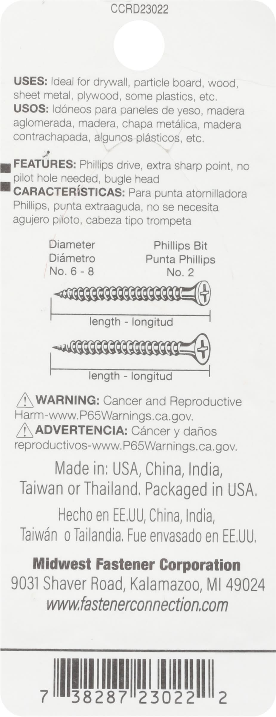 All-Purpose Screws, Phillips Bugle, Yellow Zinc Midwest Fastener Corporation,