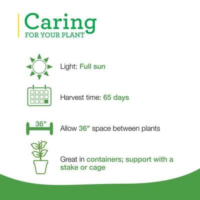 Lots of tasty, versatile cherry tomatoes grow on an attractive deep green, husky plant. Unlike most cherry tomato varieties, this plant only grows 3 ft. to 4 ft. tall, making it ideal for containers, but produces loads of fruit through until fall. Use tomatoes in salads, stir-fries, shish-kebabs or for fresh eating. Plant is disease-resistant and will need a cage o WARNING: This product contains a chemical known to the State of California to cause cancer. For more information, go to www.P65Warnings.ca.gov.