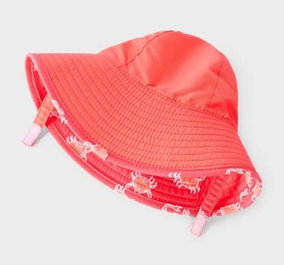 Keep your little one sun-safe and stylish with the Baby Boys' Reversible Crab Swim Hat. Crafted from lightweight, woven, recycled polyester, this hat is cute and convenient for all-day wear. Featuring a fun crab design and a reversible option for versatile wear, it provides UPF 50+ sun protection to shield your baby’s delicate skin during outdoor adventures.