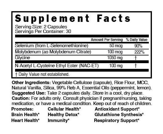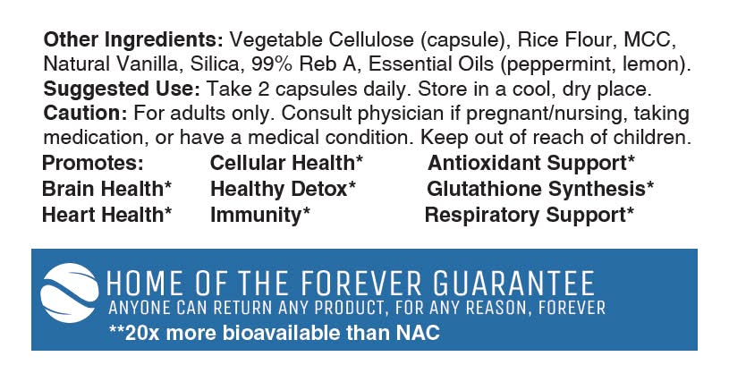 NAC Ethyl Ester with glycine is 20x more bioavailable than NAC and crosses the blood brain barrier. It increases glutathione, the mother of all antioxidants, which promotes eye health, brain health, cellular health, detoxification, and proper immune function.
