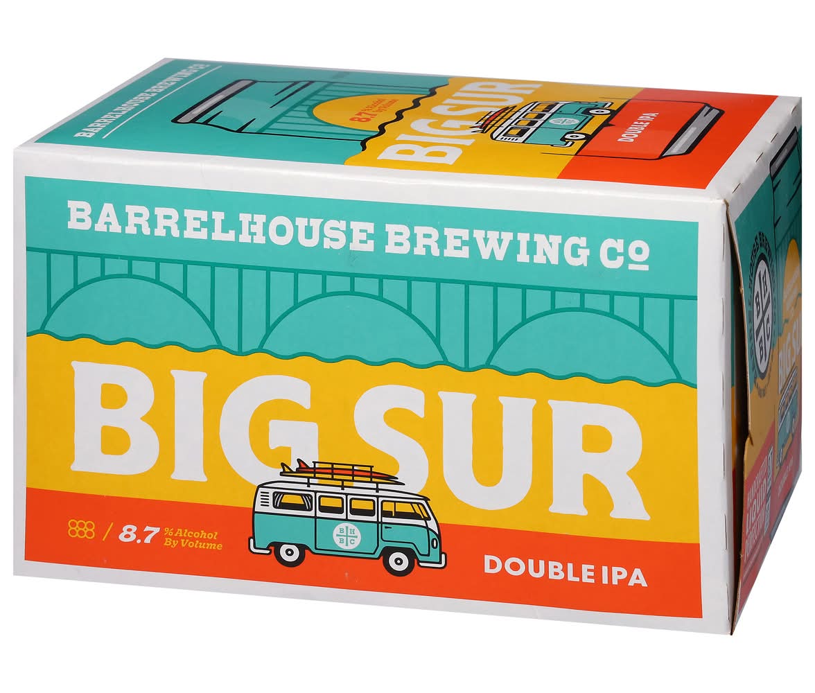 Beer, Double IPA, Big Sur • Alcohol by volume: 9.3% • Barrel House Brewing Co, • Packaging: Reusable