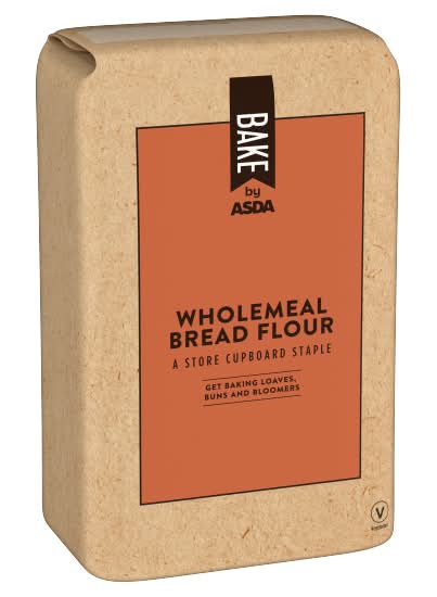 Wholemeal wheat flour • Asda, Leeds, LS11 5AD. • Packaging: Reusable
