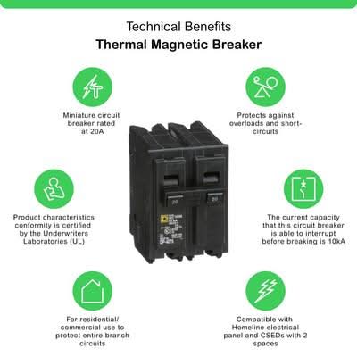 The Square D by Schneider Electric Homeline 20 Amp Two-Pole Circuit Breaker is used for overload and short-circuit protection of your electrical system. This breaker is compatible with Homeline load centers and CSED devices. The ANSI-certified and UL-listed unit is rated for 120/240 VAC and 10,000 AIR. Homeline circuit breakers are built with the same Square D brand quality you have come to expect at a price that makes them the best value in their class. Homeline circuit breakers are the best in class. Designed exclusively for the residential market, Homeline products offer everything you need to distribute electricity throughout your home.