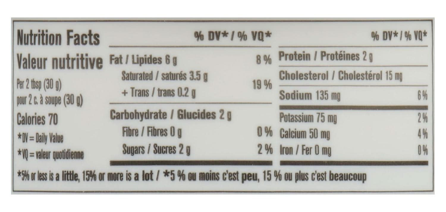 Light: 25% less fat than our regular compliments cream cheese spread