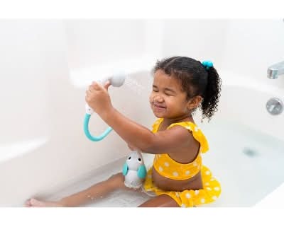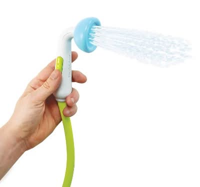 Elephant Baby Shower is a battery-operated compact and portable baby shower designed for ease of use by parents and gentle comfort for babies. Easy activation shower head with on/off nobs allowing easily pausing or continuing water flow. A gentle stream enables easy reach and wash of hair, neck and baby folds. Designed for safe, gentle and easy maneuvering while bathing babies. Suits all types of bath tubs.
