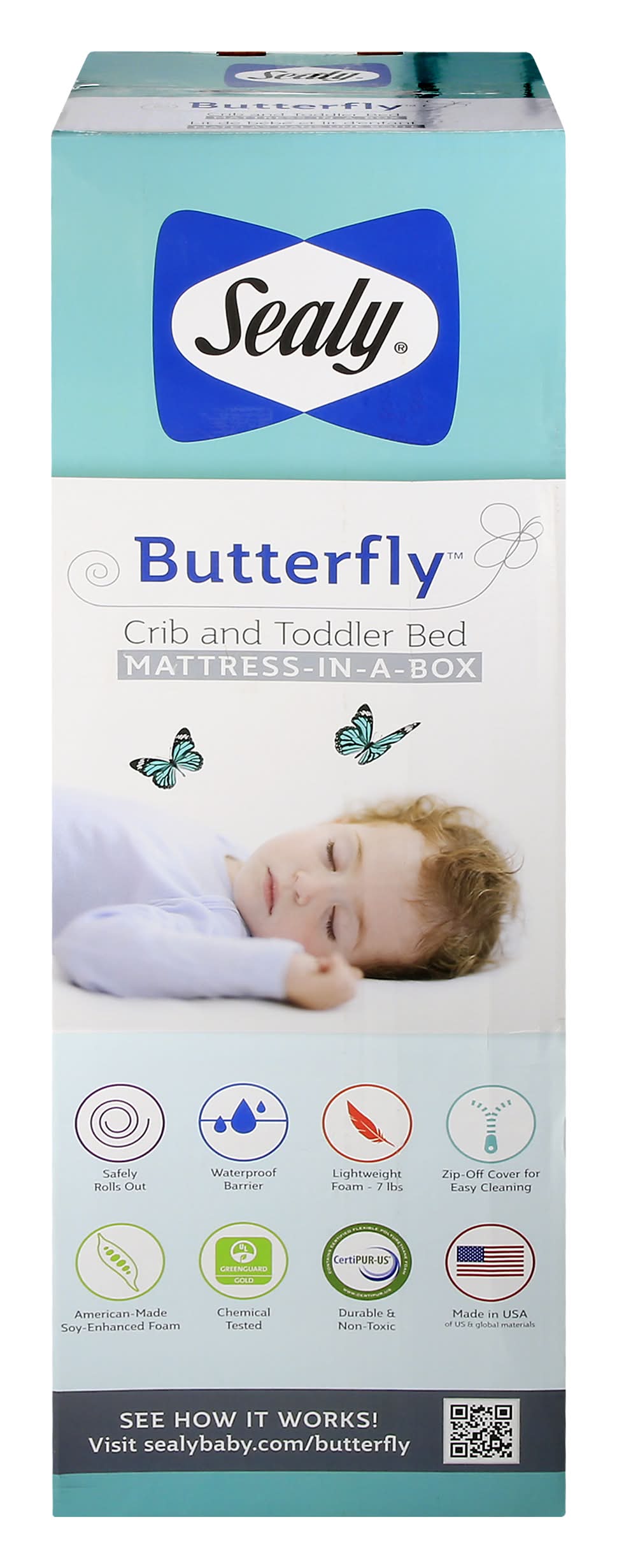Sealy Butterfly Crib and Toddler Bed Mattress-In-A-Box