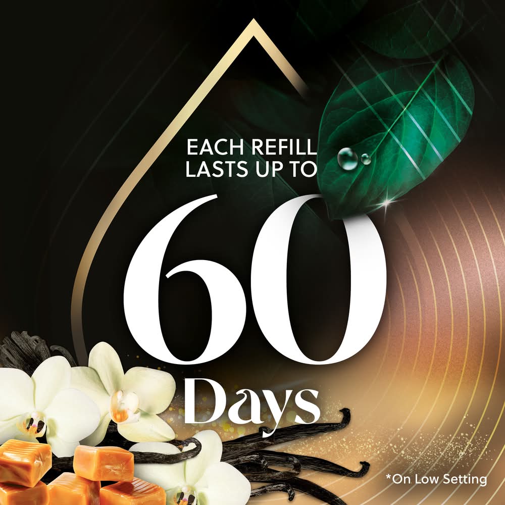 Set the mood in your home with indulgent scents of nature. Infused with 2x more natural essential oils* for an authentic true-to-nature fragrance experience. A luxurious treat for you and your home. Air Wick Vibrant Scented Oil Refills release continuous fragrance for up to 60 days (based on low setting) so your home smells welcoming. Our latest Air Wick scented oil warmer optimizes airflow for 360 degree fragrance diffusion, reaching every corner of the room for a consistent fragrance experience. The Air Wick Scented Oil warmer also allows you to choose between 5 fragrance settings for just the right amount of fragrance. It continuously diffuses and carefully blends fragrance throughout your home, office, or any space. *Vibrant fragrance infused with 2 times more natural essential oils vs regular Air Wick Scented Oils.