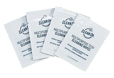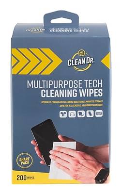CleanDr Multipurpose Tech Cleaning Wipes - 200 Count Keep all of your tech devices clean with Digital Innovations easy and convenient CleanDr Multipurpose Tech Cleaning Wipes. The pre-moistened / individual packed wipes are perfect for cleaning desk areas, phones, keyboards, headphones, laptops, and monitor stands. - Convenient, individually-wrapped, disposable 4 x 7 wipes - Specially-formulated, streak-free cleaning solution removes oils, dirt, dust, smudges, and fingerprints - Ammonia-free solution is safe for all screens, keyboards, and more - 200 count share pack with tear-away dispensing slot