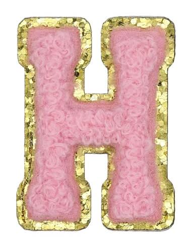The chenille letter with a glittery gold outline can be combined with other patches to personalize tote bags, hats, t-shirts and more. Available in multiple designs. Polyester. For temporary or permanent use